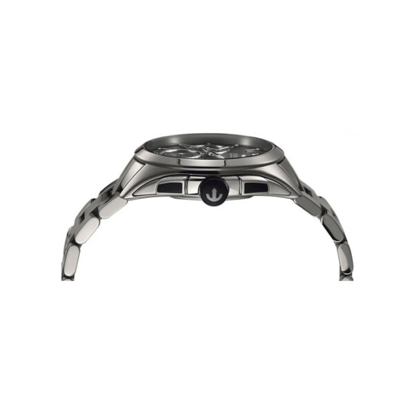 ساعت مچی عقربهای «رادو» مدل «Rado 650.0276.3.011» از سری «Hyperchrome» یکی از لوکسترین ساعتهای کلاسیکاسپرت رادو است که از طراحی جذاب، کارآمد و کیفیت و دقتی منحصربهفرد بهره میبرد. برای این ساعت یک موتور خودکار در نظر گرفته شده است که بدون نیاز به باتری کار میکند و انرژی مکانیکی آن از حرکات معمول دست تامین میشود. با توجه به قابلیتهای کرنوگراف یا زمانسنج، اهمیت حرکتیبودن موتور و بینیازی به باتری دوچندان میشود. در طراحی موتور پرقدرت «ETA 2894-2» در این مدل، 37 سنگ قیمتی استفاده شده است که ضمن به حداقلرساندن استهلاک، مزایایی چون افزایش دقت و طول عمر بالای موتور را به همراه دارد. همچنین این موتور میتواند در صورت ساکنماندن ساعت، تا 45 ساعت پس از اولین حرکت دست یا ساعت به عملکرد خود ادامه دهد. این تمام چیزی نیست که این مدل را به یک ساعت لوکس و متمایز تبدیل ساخته است. در این مدل از سری هایپرکروم، یک قاب یکپارچه به قطر 45 میلیمتر و بندی بسیار جذاب از جنس سرامیک پیشرفتهی پلاسما در نظر گرفته شده که با بخشی از جنس Stainless Steel همراه است. سرامیک پیشرفتهی پلاسما (Plasma High-Tech Ceramic) از جمله مشتقات خاص سرامیک است که برای اولین بار مهندسان شرکت رادو از آن در طراحی ساعتهای مچی استفاده کردند. این ماده که از تمام ویژگیهای ممتاز سرامیک پیشرفته نظیر وزن کم، سازگاری با انواع پوست و ایجادنکردن حساسیت پوستی، مقاومت و استحکام بالا و همچنین کاملا ضدخشبودن بهرهمند است، از ظاهری براقتر و فولادین نیز بهره میبرد. بدین ترتیب، در کنار استحکام بالا، وزن سبک و سازگاری با انواع پوست معمولی و حساس از دیگر ویژگیهای ممتاز و قابلتوجه این ساعت محسوب میشود. مقاومت بالای بدنه دربرابر آب (10ATM) نیز از دیگر مشخصات بارز کیفی این مدل است که در تمامی شرایط روزمره (شستوشوی دست و بارش باران) و همچنین در شرایطی که ساعت در تماس نسبتا بلندمدتی با آب قرار میگیرد، از نفوذ آب به بدنه جلوگیری میکند. این ساعت لوکس و شیک را میتوان یکی از جذابترین ساعتهای لوکس کلاسیکاسپرت برشمرد که با توجه به مشخصات ظاهری و کیفی یادشده، هر مرد شیکپوشی را شیفتهی اصالت، کیفیت و طراحی بینظیر خود میکند.